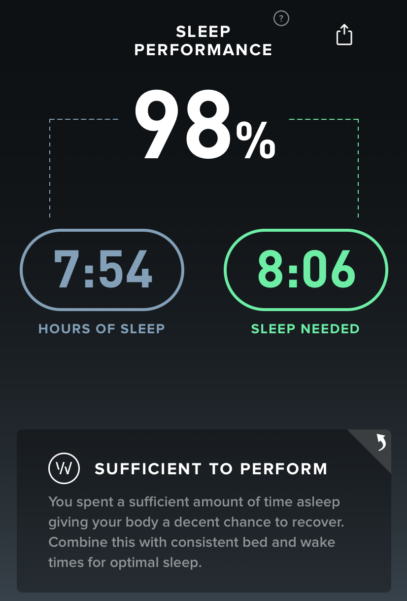 Данные учитывают, сколько вы спали и насколько интенсивной была ваша активность, чтобы рассчитать индивидуальную цель по продолжительности сна. Трекер показывает, сколько времени вы провели в кровати, сколько реально спали и сколько сна вам требовалось. Кроме того, WHOOP анализирует стабильность режима сна, количество восстановительного сна и наличие “долга сна” — нехватки отдыха из-за предыдущих коротких ночей. Высокий показатель сна вызывает ощущение заслуженного удовлетворения . Осознание того, что организм получил необходимый отдых, придаёт уверенности. Данные, которые собирает whoop о сне практически идентичны другому умному устройству - кольцу Oura Ring, что говорит о точности этих устройств.