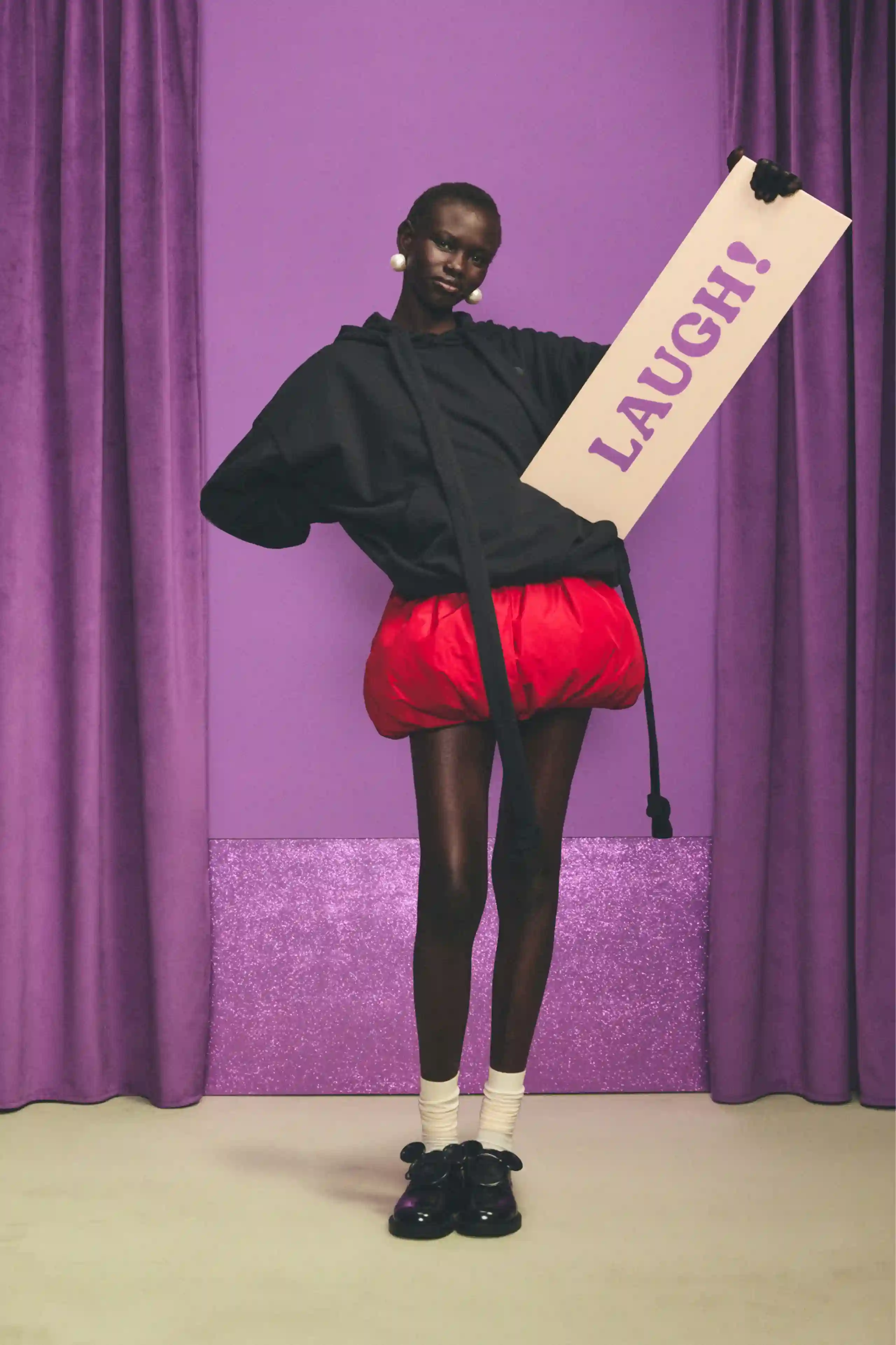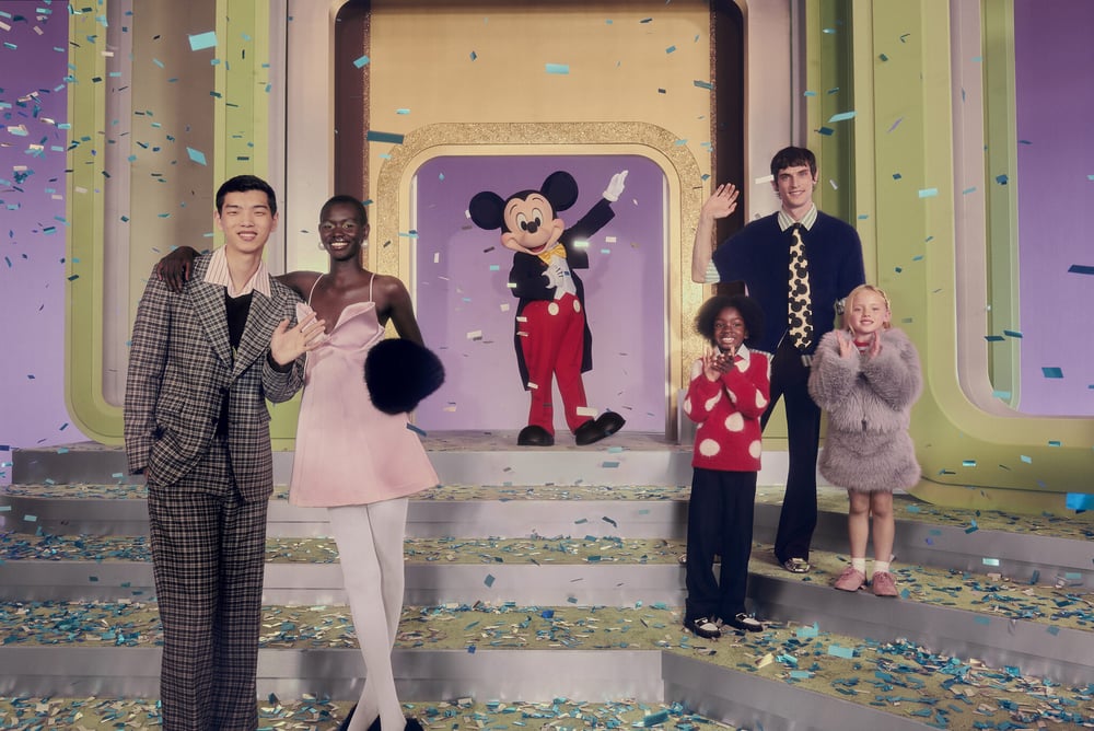 Результат: жёсткие жакеты, как будто оживающие на теле, милые пышные юбки и мини-шорты, изящные обувные силуэты, комплекты-твинсеты и перьевые боа в женской линии; уменьшенные версии этих элементов в детской одежде (эта коллекция стала для Ламберта первой в категории kidswear). Прямые отсылки появляются в виде пушистых шапок с ушками мышки и графических футболок и свитеров с изображениями персонажей и слоганами — Ламберт уже анонсировал кепку с Гуфи в одном из парков. «Все спрашивали меня, откуда она!» — улыбается он.